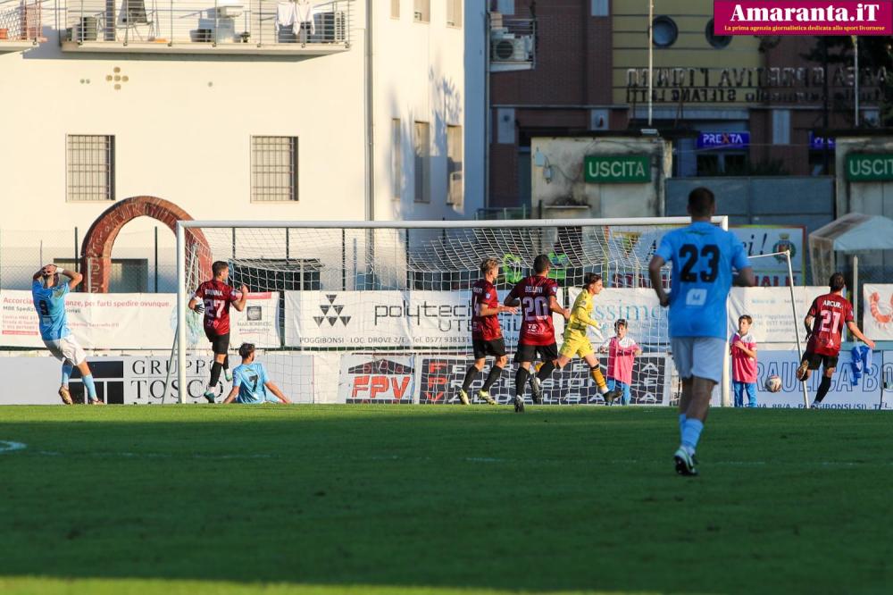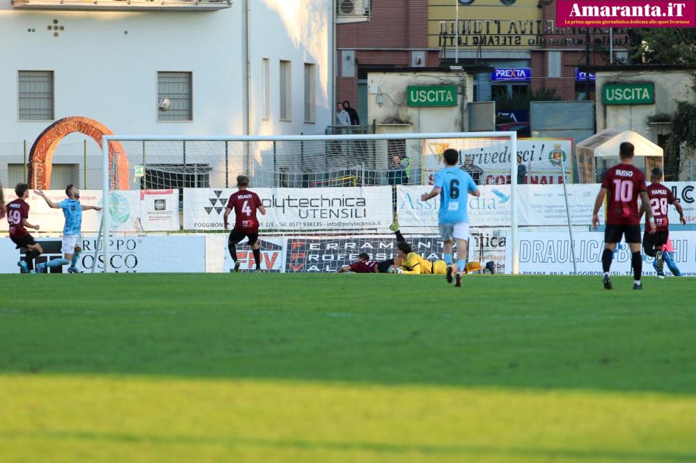 Poggibonsi - Un Livorno a due velocità scende in campo a Poggibonsi: il primo tempo è decisamente positivo, con gli amaranto che passano in vantaggio grazie a Malva, bravo a raccogliere un tiro dal limite di Bellini, e poi a Risaliti, che segna di testa su calcio d'angolo. Da segnalare anche un palo colpito da Hamlili, che sfiora il terzo gol per il Livorno. Nella ripresa, però, la squadra cala e lascia spazio agli avversari: Vitiello accorcia le distanze, e solo i riflessi di Cardelli evitano ulteriori pericoli, respingendo alcuni tiri ravvicinati insidiosi.